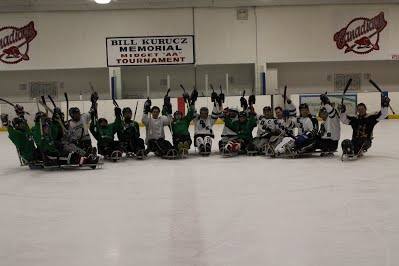 The final twist in the game is that it ends with sledge hockey. The sledge hockey comes as a relief to the coaches' feet, but they now have to use their arms to finish the 24 grueling hours.